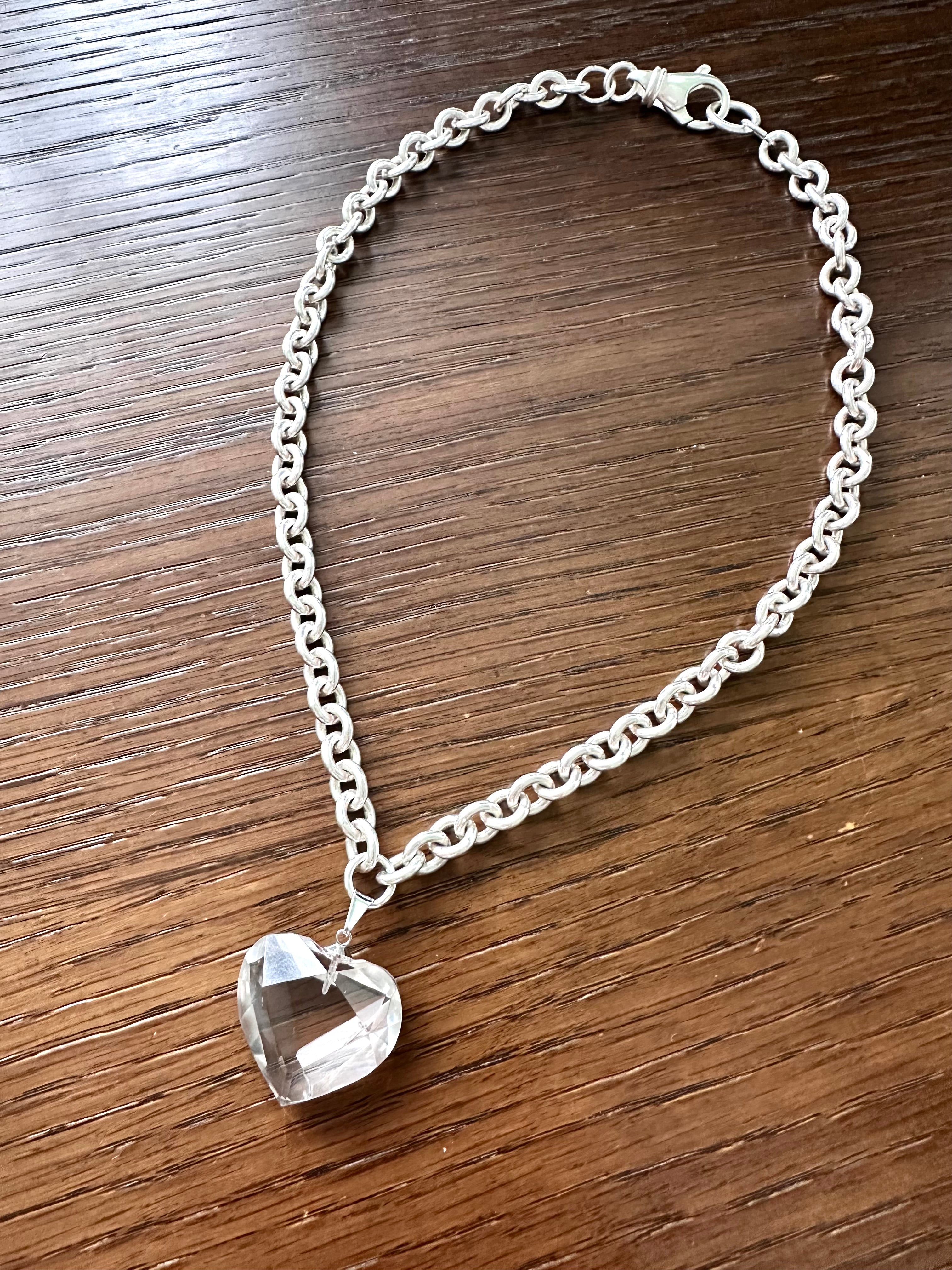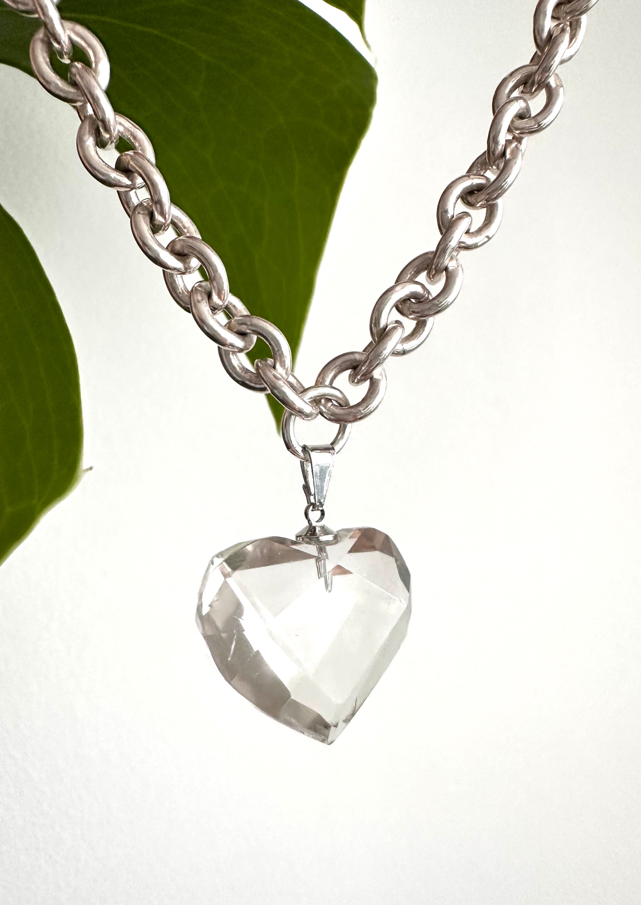 This sterling silver edition features a faceted light Smokey Quartz heart, paired with a chunky sterling silver cable chain reminiscent of our small oval link chain in weight and presence. Finished with a substantial sterling silver clasp, this piece balances softness and strength, offering a timeless and elevated expression of Armour.