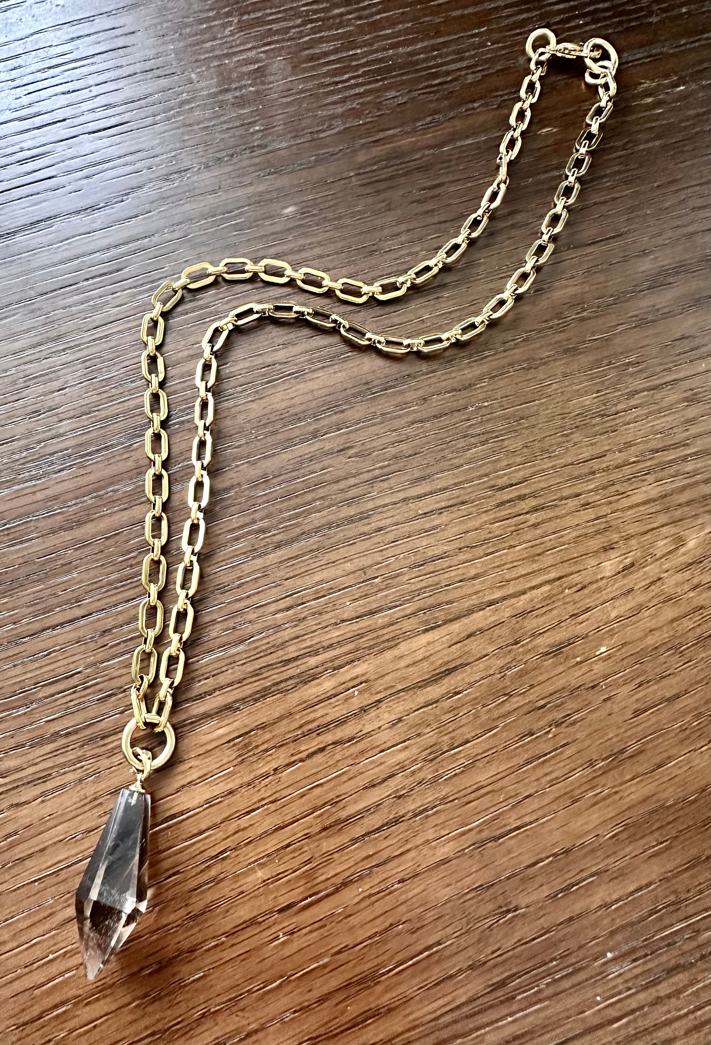 This listing features a one-of-a-kind Smokey Quartz pendants with golden rutilation. Each stone is high grade and entirely unique, with fine golden threads moving organically through the smoky quartz. The interplay between depth and light creates striking internal movement and dimensional brilliance, revealing new details as the stone catches the light.