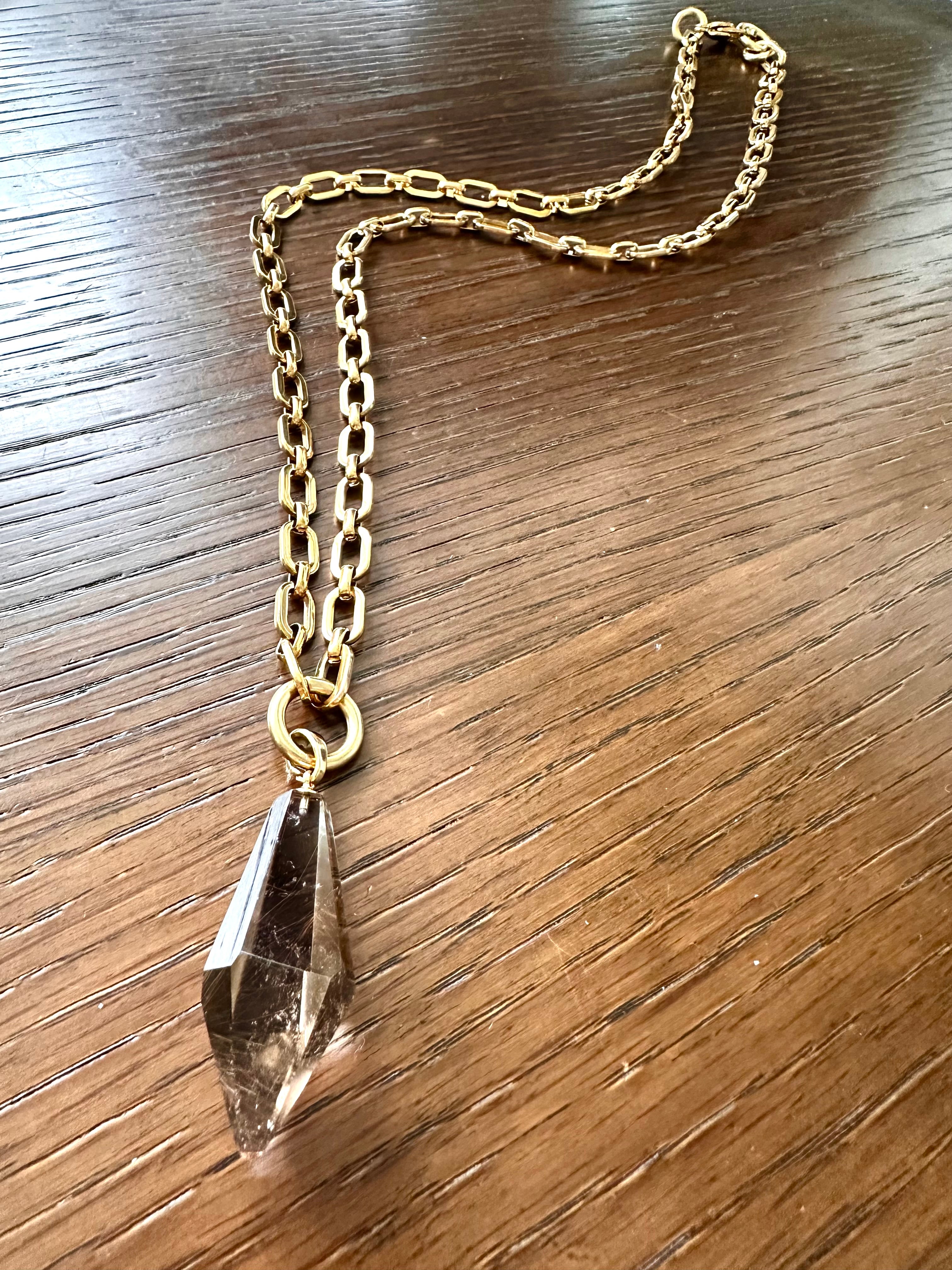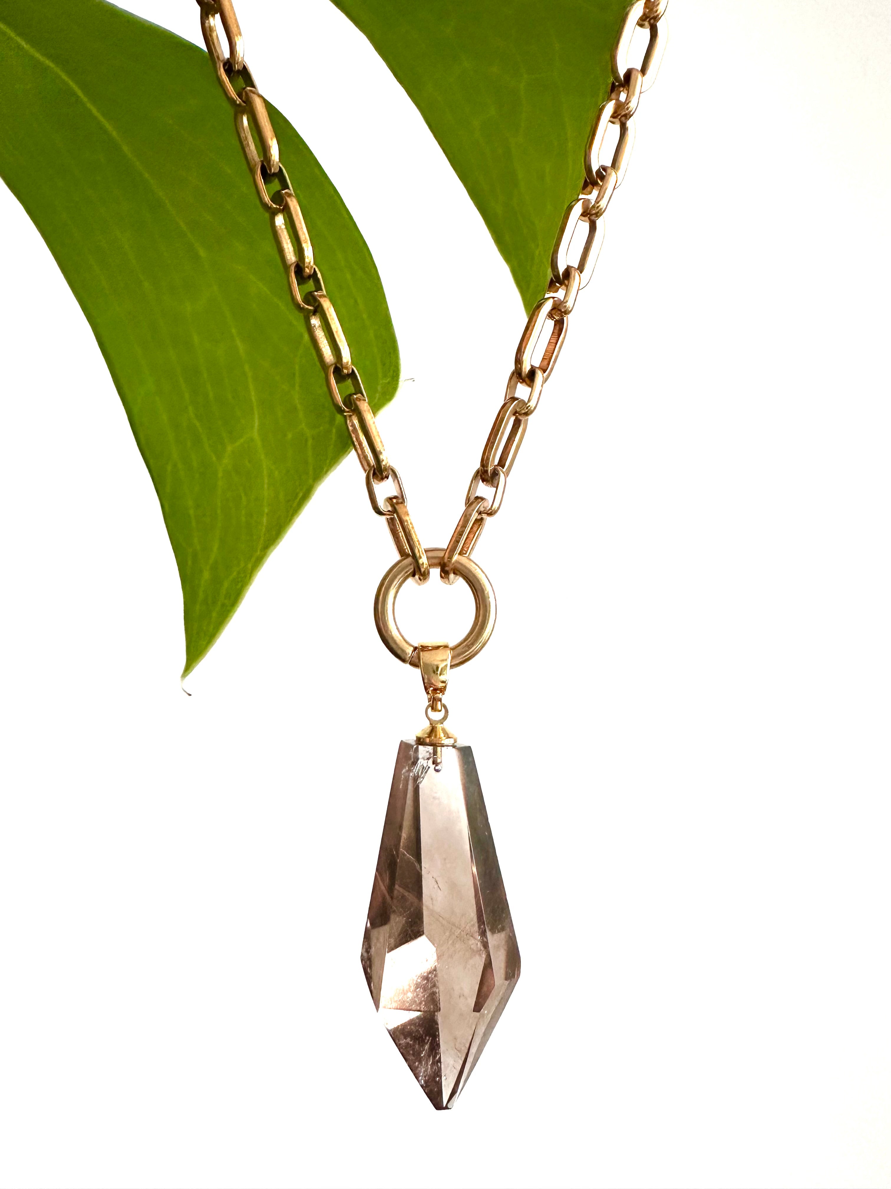 - Pendant: High-grade Smokey Quartz with natural golden rutilation